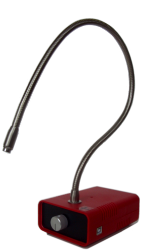 Ein flexibler Metallschlauch (Schwanenhals) von 60cm Länge bietet genug Flexibilität für jeden Labortisch, der Emitterdurchmesser beträgt nur 10mm. Der Emitter kann daher nah am Objekt platziert werden ohne das Blickfeld zu behindern.